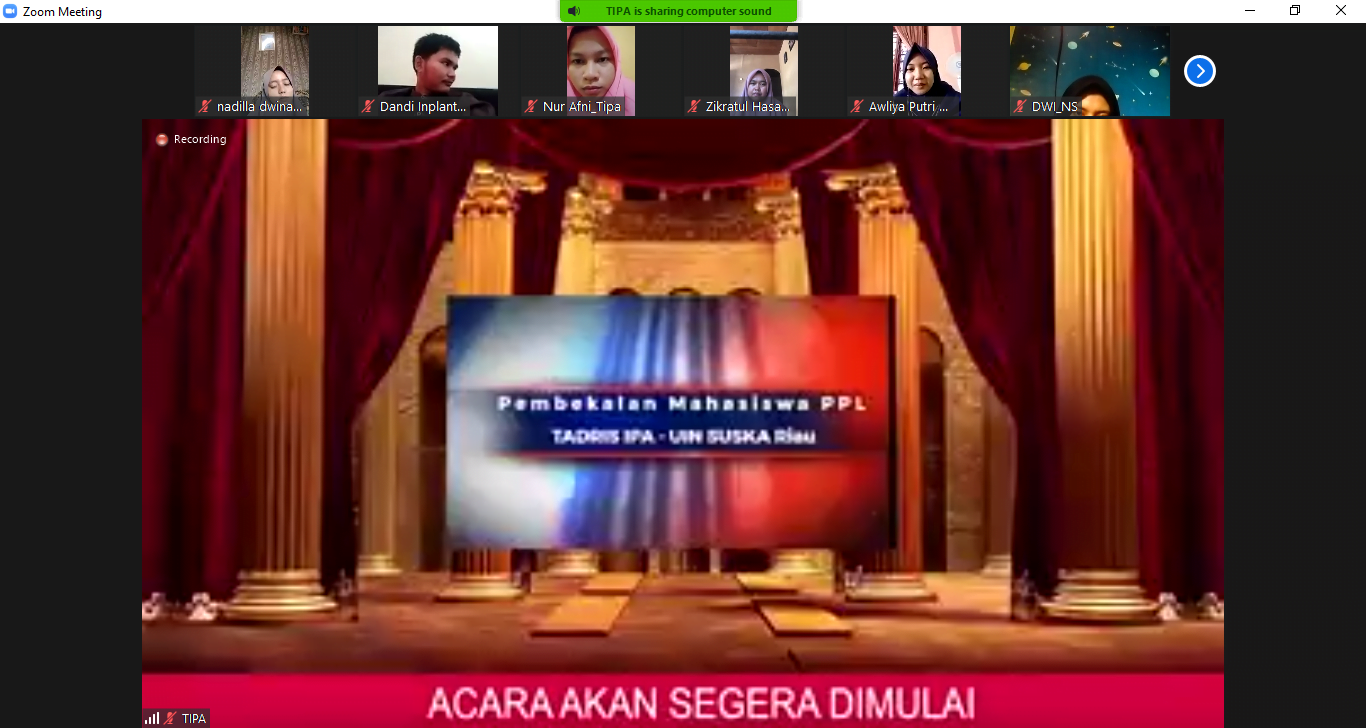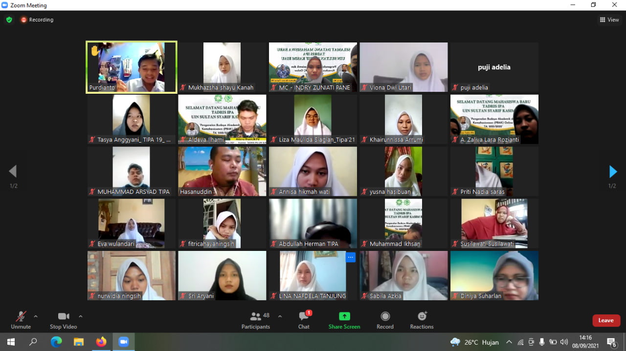 Pembekalan PPL (Program Pengalaman Lapangan) Bagi mahasiswa Prodi Tadris IPA Fakultas Tarbiyah dan Keguruan Universitas Islam Negeri Sultan Syarif Kasim Riau semester 7 dilakukan pada Hari kamis, Tanggal 16 September 2021. Pembekalan dilakukan secara online melalui zoom meeting dan merupakan kegiatan wajib yang harus diikuti oleh mahasiswa Prodi Tadris IPA sebagai bekal untuk melaksanakan PPL....Read More